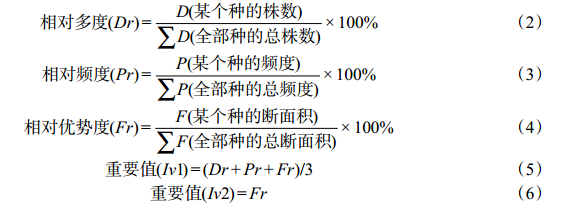 相异系数法用于探讨东秦巴山地南北样点之间物种的空间变异性,进行群落结构划分。在物种数据分析方面,常用系数有 Bray-Curtis相异系数、弦距离和 Hellinger距离。Bray-Curtis相异矩阵可以直接由原始数据计算,依据多度绝对数量差,文章采用该变异系数。