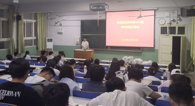 5月29日晚,地理信息科学系于教2-T3教室召开考研经验交流会,对2022级GIS专业学生开展备考指导。GIS系主任张兴国副教授、专任教师代表、2025届考研成功学生代表李研研(首都师范大学)、宋旭铭(北京工商大学)、焦佳伟(上海师范大学)、李静怡(华北水利水电大学)、徐东员(首都师范大学),以及全体2022级GIS专业学生参与交流。