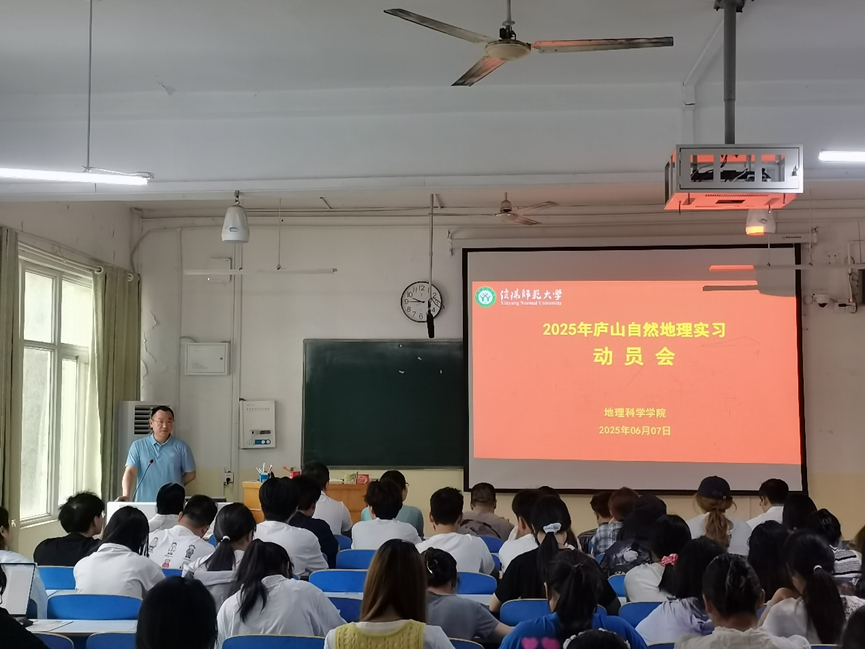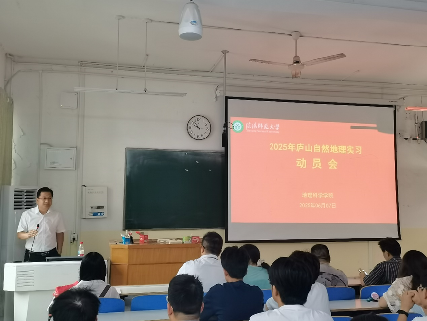2025年6月7日,第二批庐山自然地理实习动员会在教三楼207教室举行。党委副书记韩勇、副院长闫军辉,实习实训中心主任范宝伟,实习班级班主任,实习教师代表及2023级自然地理与资源环境、2024级地理信息科学专业学生参加了动员会,会议由李宗盟主持。