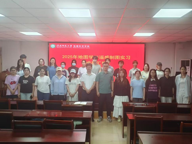 2025年7月5日,2023级地理信息科学专业2025年地图学与遥感制图实习成果汇报会于理科楼南410会议室举行。地理信息科学系主任张兴国副教授,指导教师时满星博士莅临参会并担任评委,2023级地理信息科学专业全体同学参会。