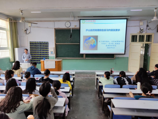 会上,李秀美主任介绍了自然地理实习内容、庐山概况以及实习具体要求;史兴俊老师具体介绍了庐山三大岩的具体特征等专业知识;翟慧敏主任具体介绍了人文地理实习规划、南京实习地点概况以及实习具体要求,喻超老师具体介绍了人文地理实习的南京实习路线及相关人文地理知识;曹鹏鹏老师强调了实习安全注意事项;最后,范宝伟老师从后勤保障详细介绍了同学们参加本次实习的衣、食、住、行等具体规划安排。
