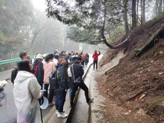 3月18日,实习路线:含鄱口—庐山植物园—东谷—五老峰—三叠泉。五老峰上,同学们学习了地垒、地堑、正断层、单面山、顺向坡、逆向坡、变质岩的类型和判断依据,同时领略了大自然的鬼斧神工;含鄱口,同学们回顾了冰川形成的地貌类型:冰斗、冰窖、“U”型谷、刃脊、角峰等;了解马刀树形成的过程及原因。庐山植物园内,同学们认识植物类型、种类、判断依据等;三叠泉千余级台阶,考验了同学们体力,明白了三叠泉两侧岩石的岩性、节理、断层及岩石之间的转化和三叠泉形成原因。