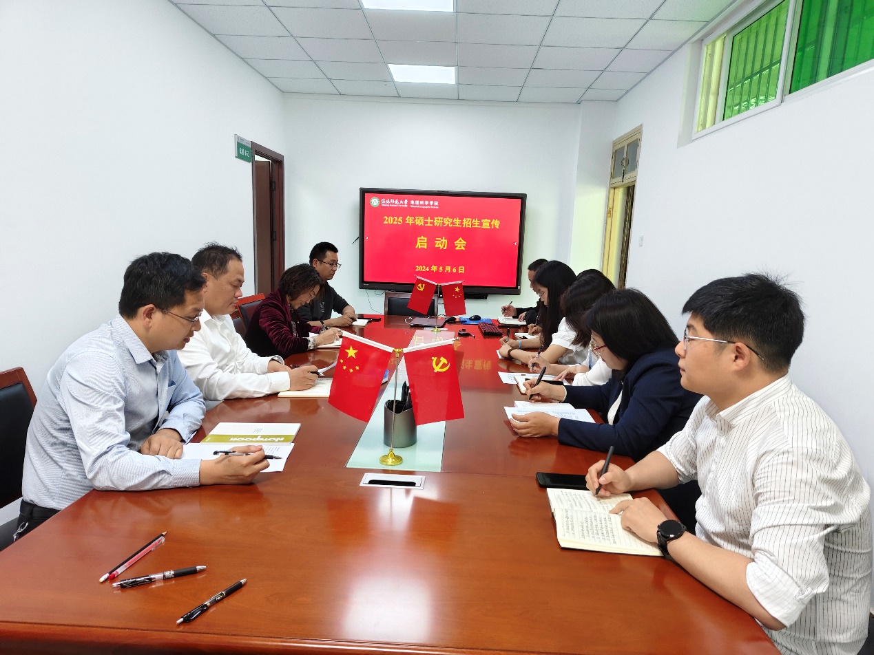 为进一步拓宽生源渠道,改善生源结构,提高生源质量,吸引更多优秀考生报考我校,5月6日,bat365于理科楼南楼403会议室召开2025年硕士研究生招生宣讲启动会。院长牛继强、副院长刘明华、研究生工作秘书闫军辉、相关专业负责人参加了会议,会议由研究生工作秘书闫军辉主持。