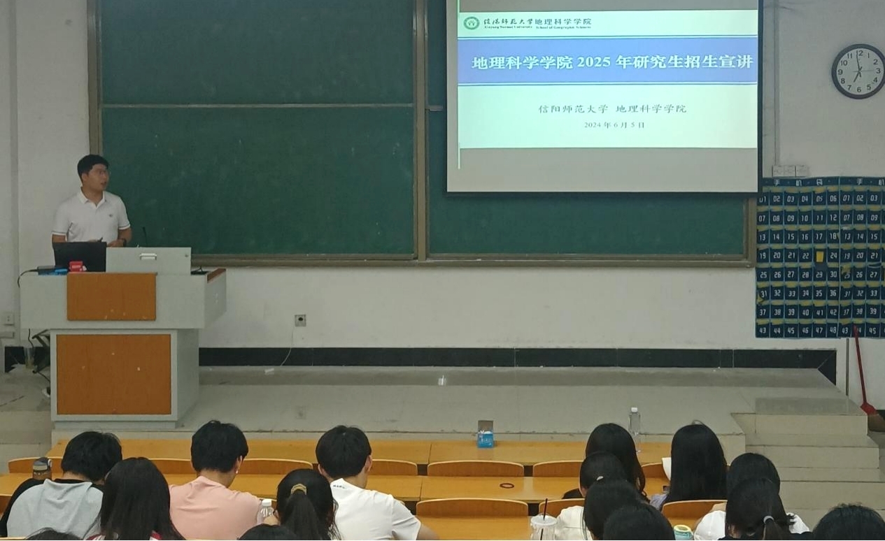 为扎实推进2025年硕士研究生招生工作,6月5日,bat365何伟纯博士、马志飞博士前往洛阳师范学院地理与旅游学院进行2025年度硕士研究生招生宣讲。宣讲会采取“线上+线下”相结合的方式,地理与旅游学院地理科学系主任杨会民副教授,2021级、2022级地理科学专业共120余名学生参加了宣讲会,会议由杨会民副教授主持。