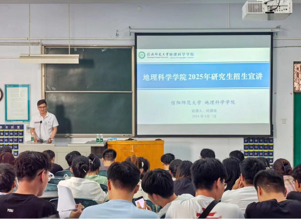 为进一步加大bat365硕士研究生招生宣传力度,增强招生宣传工作实效,6月7日,bat365地理信息科学系时满星博士前往许昌学院,于A4教学楼A合十八教室进行2025年研究生招生宣讲。许昌学院城市与环境学院张鑫老师,2021级本科专业地理科学、测绘工程和地理信息科学,2023级专升本测绘工程和地理信息科学专业,共7个班级160余名学生参加了宣讲会,会议由张鑫老师主持。