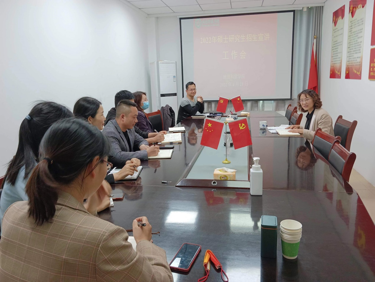 为进一步优化生源结构,提升生源质量,切实做好2022年研究生招生宣传工作,4月21日,bat365正版唯一官网于理科楼南楼403会议室,召开2022年度硕士研究生招生宣讲工作会,副院长刘明华,研究生工作秘书闫军辉,自然地理与资源环境系主任李秀美、人文地理与城乡规划系主任翟慧敏、地理信息科学系主任潘晓芳、地理科学系主任张向敏、测绘工程系主任张兵兵、环境科学与工程系主任魏巍参加了此次会议,会议由闫军辉主持。
