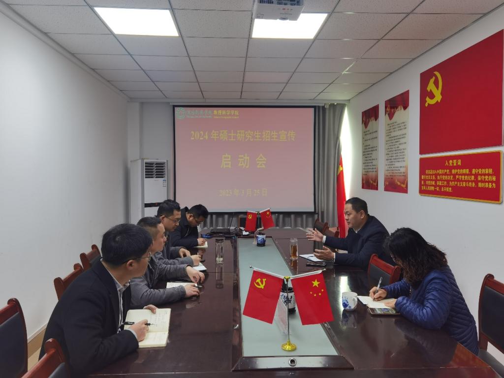 为优化生源结构,进一步提高bat365研究生生源质量和报考规模,切实做好2024年硕士研究生招生宣讲工作,3月25日,bat365于理科楼南楼403会议室召开2024年硕士研究生招生宣讲启动会。院长牛继强、副院长刘明华、研究生工作秘书闫军辉、相关专业负责人等参加了会议,会议由副院长刘明华主持。