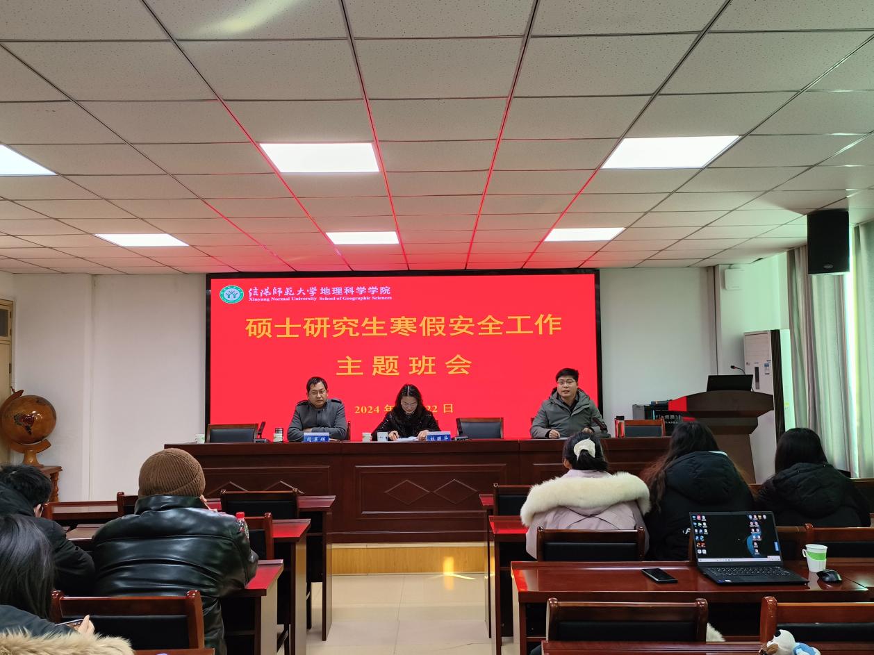会上,班主任何伟纯首先传达了学校关于研究生寒假留校的管理规定,从实验室安全、网络安全、人身安全、财产安全、出行安全、食品安全、消防安全等对留校学生进行安全教育,并结合身边事例,深入剖析安全事故的隐蔽性、多发性和多样性。何老师强调,留校研究生要严格遵守学校的规章制度和留校管理规定,提高安全防范意识,筑牢安全防线,时刻警防各种安全事故发生。刘院长指出,今年寒假研究生大规模留校学习,是疫情结束后首次。学校和学院克服困难为研究生创造学习条件,希望同学们珍惜留校学习机会。刘院长针对安全问题强调,第一,思想高度重视,要时刻牢记安全无小事;第二,学生自查、学院全面排查,重点排查违章电器,早发现、早预防;第三,强化责任担当,严格落实谁使用、谁负责工作制度。希望全体留校研究生能够以良好的学习状态度过一个安全、充实的假期。