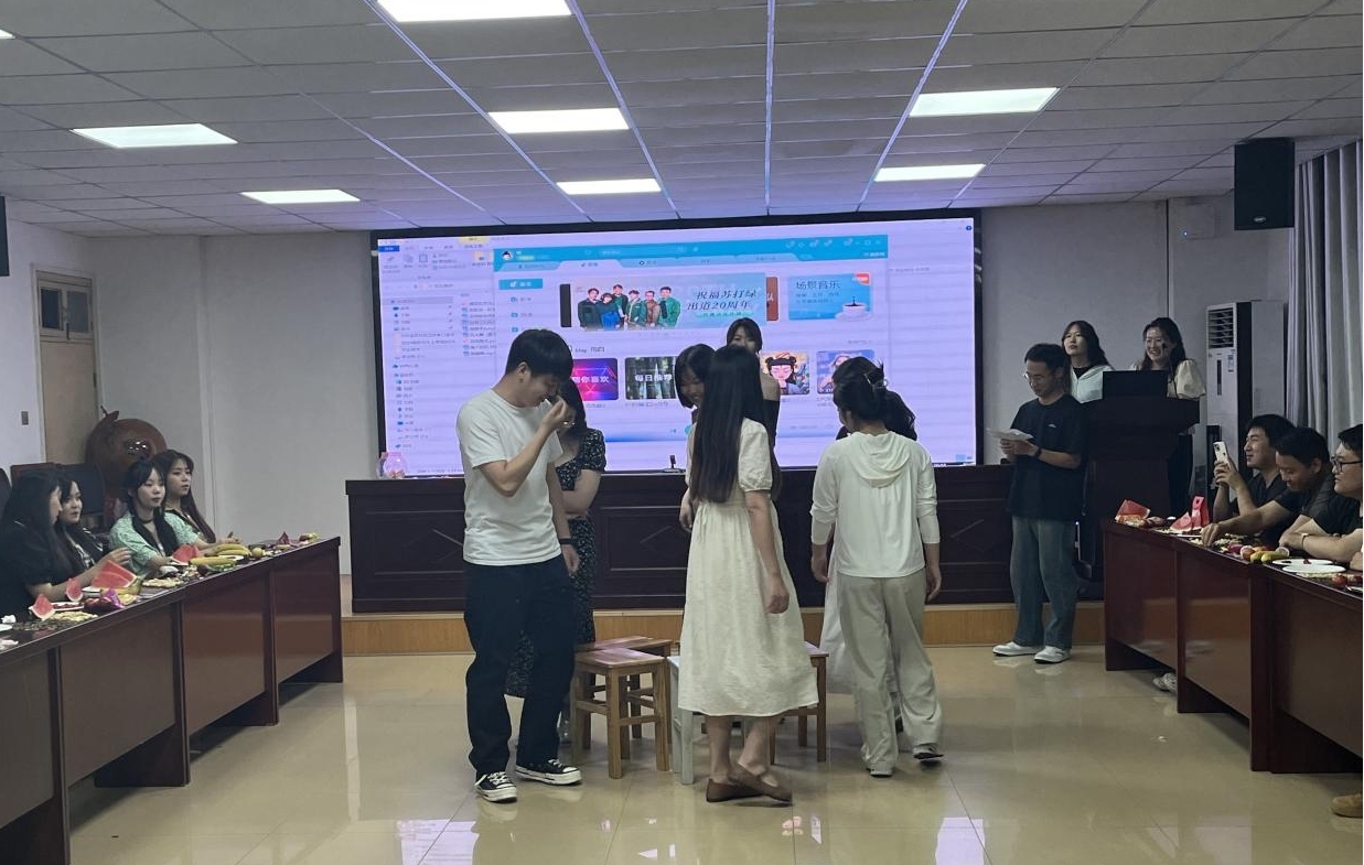 欢送晚会以充满活力的新疆舞和爵士舞开场。2022级本科生刘钰婷演唱了《夏天的风》,向即将毕业的学长学姐们表达祝福,希望他们在追求梦想的道路上初心不改、勇毅前行。2024届毕业生孙博带来了原创歌曲的吉他弹唱、刘苏涛带来了《海阔天空》独唱,赢得了在场同学们的热烈掌声。此外,晚会还设置了“你画我猜”“抢凳子”“抽大奖”等互动游戏,现场同学踊跃参与,气氛十分热烈。