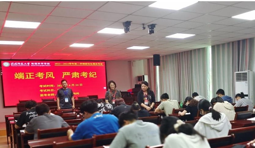 6月24—27日,2023—2024学年第二学期研究生期末考试在理科楼410会议室顺利举行,bat365正版唯一官网党委书记宋力、副院长刘明华莅临期末考试现场,对考场进行全面巡视。