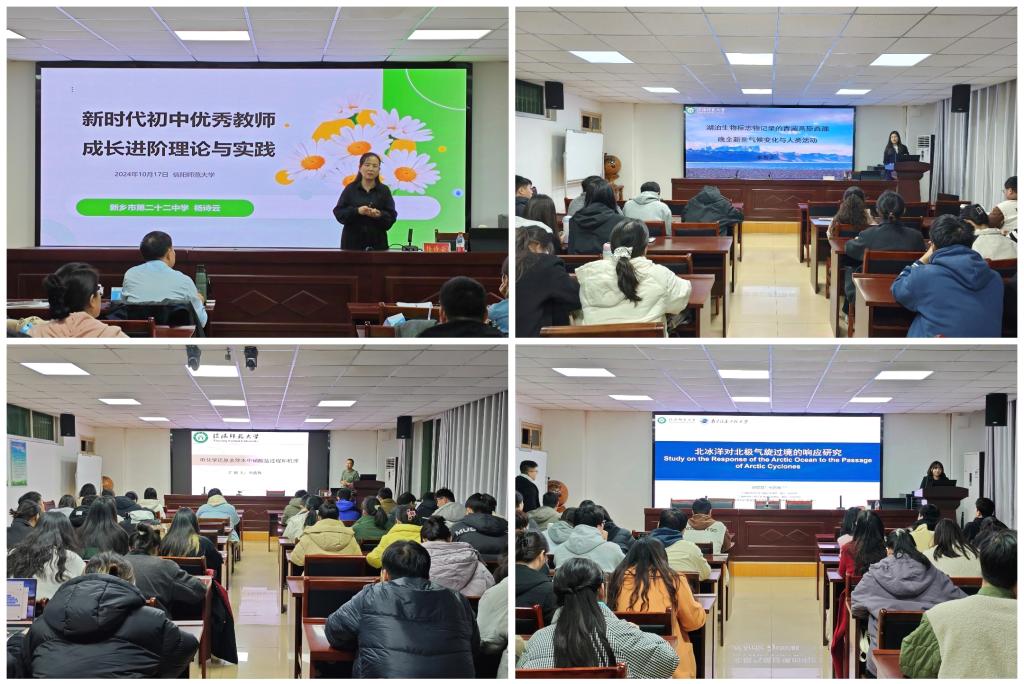 为拓宽研究生学术视野,提高研究生科研素养,bat365依托“南湖讲坛”“贤岭学术沙龙”等交流平台,于11月24日-12月27日,分别邀请河南理工大学樊良新教授和乔旭宁教授、北京师范大学陈彬教授、华东师范大学丁金宏教授和新乡市第二十二中学杨诗云副教授等校外知名专家学者以及李秀美、刘昱君、申战辉、张鹏飞、李宗盟、何伟纯等校内优秀教师在理科楼南楼410给全体研究生作学术报告。这些系列讲座,涵盖自然地理学、人文地理学、学科教学、测绘工程、环境科学与工程等学科,全面激发了bat365研究生参与学术研究的热情,开阔同学们的学术视野,对今后学术论文撰写、专业技能提升等有极大推动作用。