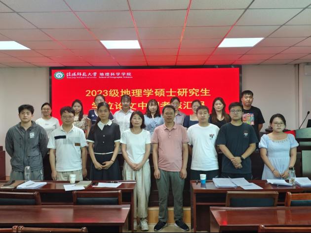 地理学专业硕士研究生中期汇报于410会议室进行,由颜俊副院长担任组长,潘晓芳副院长,李秀美、杨先武副教授和马志飞博士担任评审组成员。