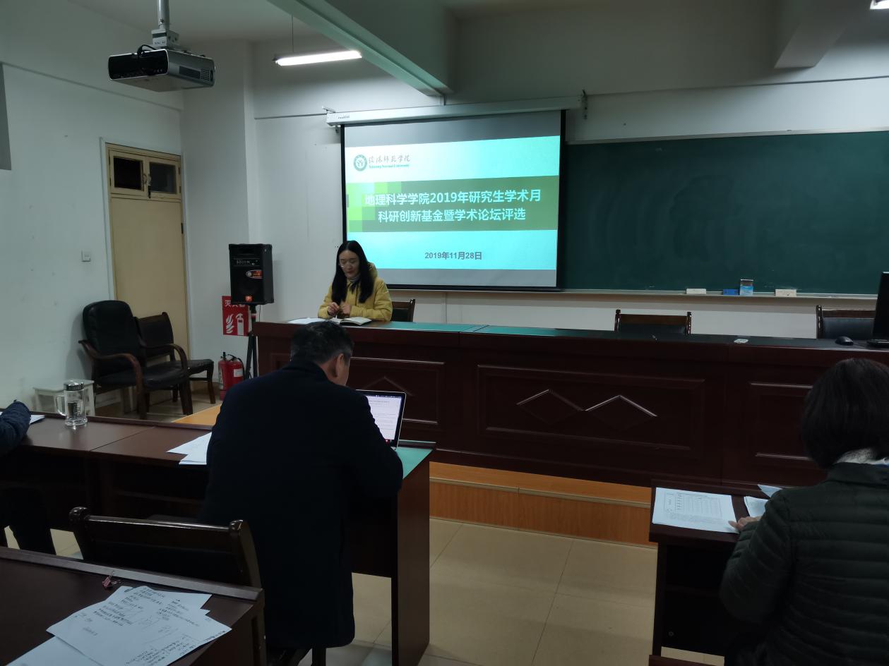 2019年11月25日,bat365正版唯一官网科研创新基金暨学术论坛评选会在理科楼南楼410会议室举行。本次活动有8名硕士研究生报名参加,牛继强教授、王义民教授、李清飞副教授、颜俊博士和闫军辉博士组成评审专家小组,会议由研究生班主任郑茜博士主持。