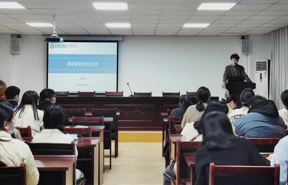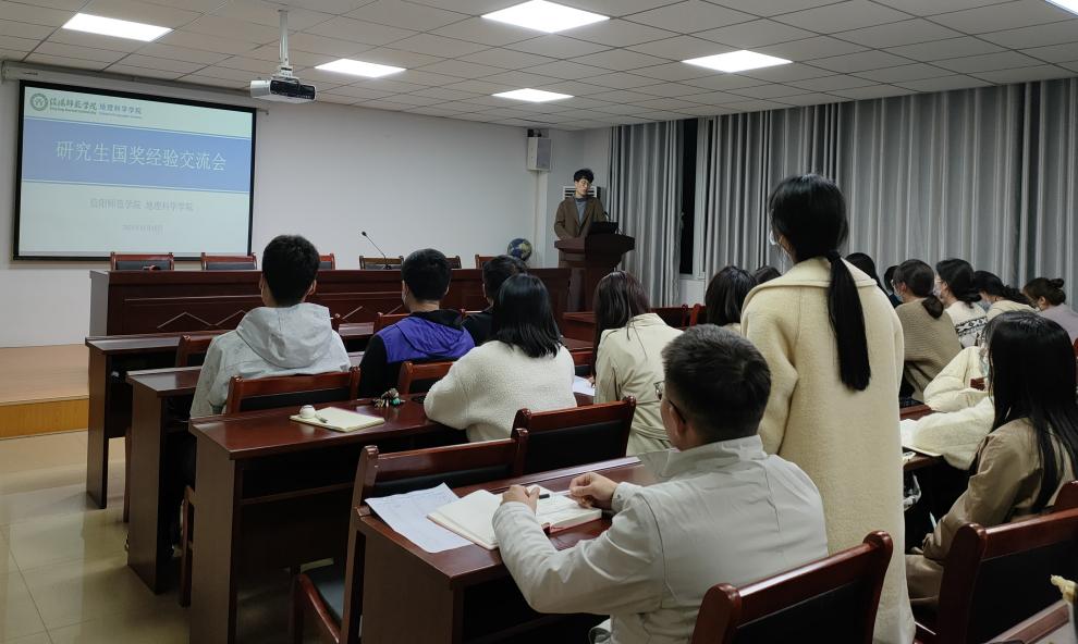 为充分发挥榜样示范和引领作用,11月15日,bat365于理科楼南楼410会议室举行硕士研究生国家奖学金经验交流会。学院邀请2021年国家奖学金获得者高学通分享申报国奖的经验,2021级地理学、学科教学(地理)专业30余人参加了交流会,会议由研究生会副主席孙博主持。