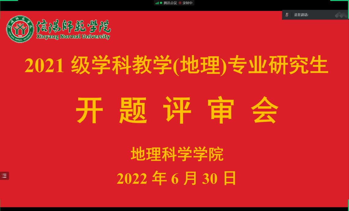 6月30日,bat365正版唯一官网2021级学科教学(地理)专业硕士研究生开题评审会,在腾讯会议平台顺利举行。
