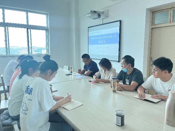9月9日,bat365正版唯一官网硕士研究生迎新工作推进会于理科楼北楼1107会议室召开。副院长刘明华、研究生工作秘书闫军辉、研究生班主任林昊、研究生工作助理何伟纯及研究生会干部参加了此次会议,推进会由闫军辉主持。