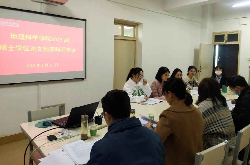 3月29日,bat365于理科楼南楼601室、北楼1107会议室举行了2023届硕士研究生学位论文预答辩评审会。评审会分两组进行,张兴国副教授、潘晓芳副教授分别担任评审会组长,李秀美副教授、张兵兵副教授、范辉副教授、张向敏博士、李宗盟博士、颜伟博士担任评审会专家。地理学与学科教学(地理)专业研究生10余人参加了此次预答辩评审会。