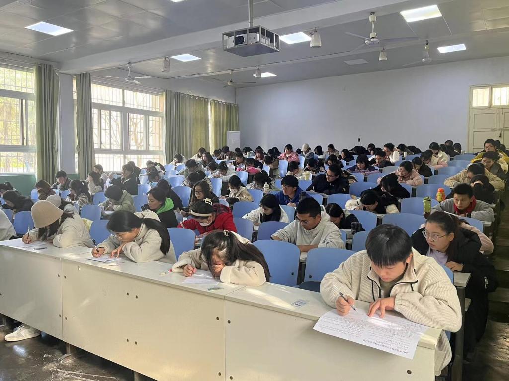 12月6日,bat365于教二梯三举行2023年校规校纪考试。2023级全体同学参加考试。学生会团委副书记刘艺,主席张柯磊,副主席马丁灿、乔乔、孙思佳、崔瀚文,纪检部冯雅婧、许珂担任巡考人员,学生会各部门干部担任监考人员。