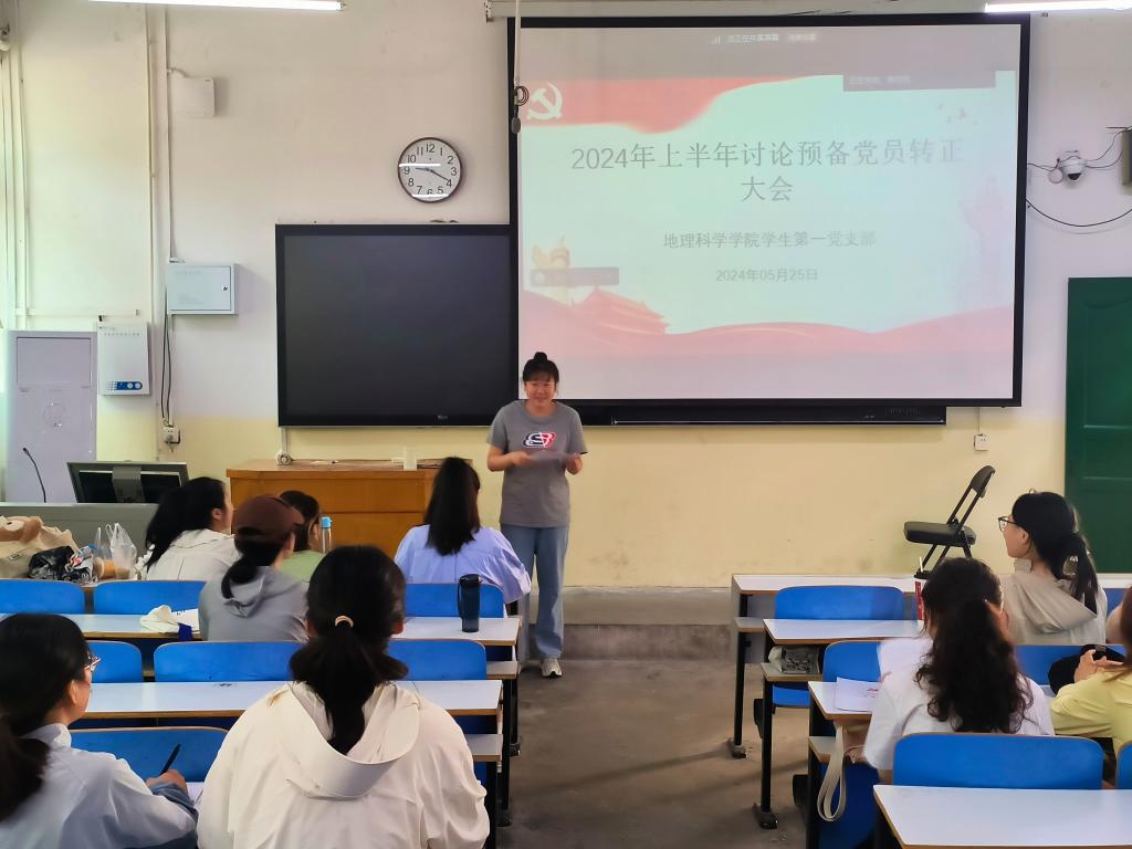 5月25日,bat365学生第一党支部于教三01顺利召开2024年春季预备党员转正会议。支部书记艾甜甜和学生第一党支部全体正式党员以及预备党员共同参加了此次会议。本次会议由艾甜甜主持。