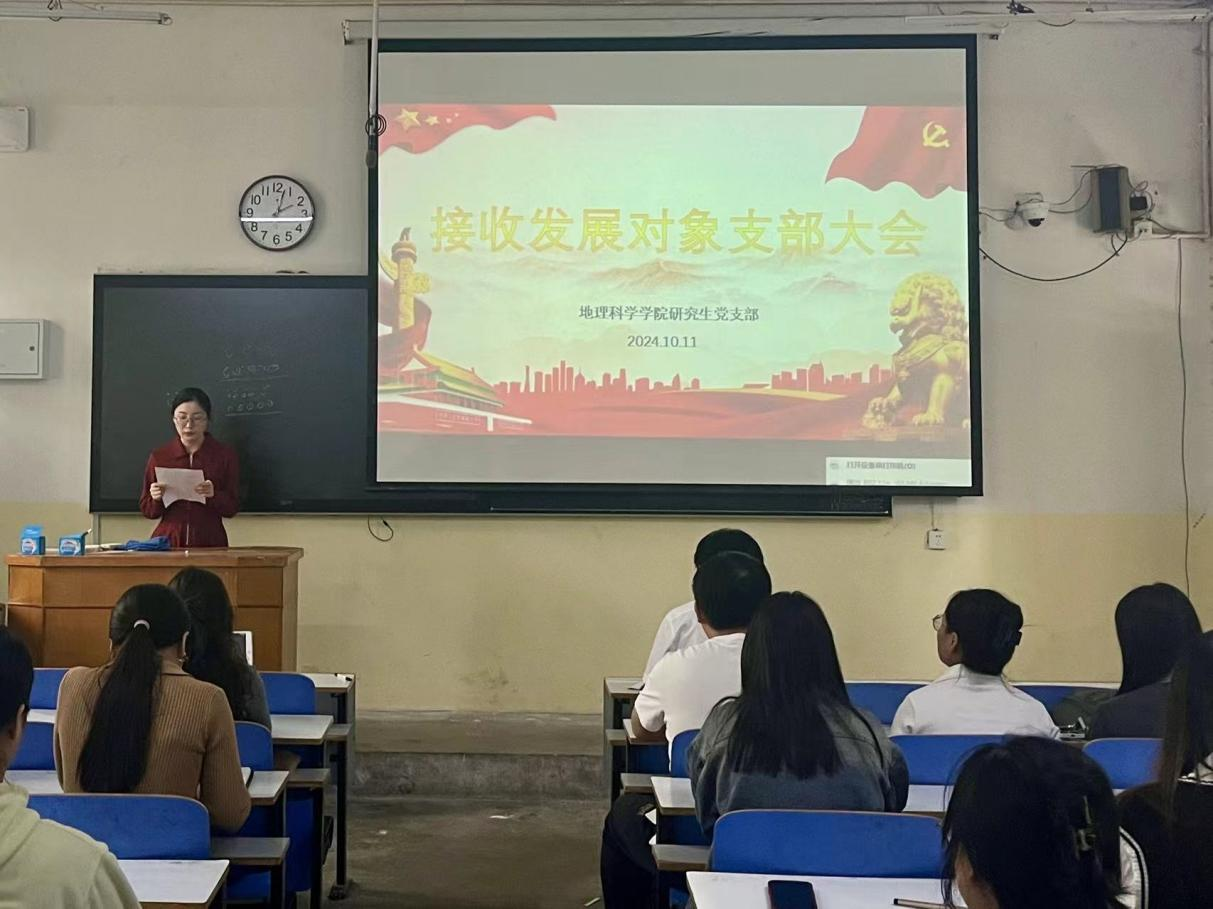 2024年10月11日,bat365正版唯一官网研究生党支部2024年下半年确定发展对象会议于教三01教室顺利召开。全体党员、预备党员及入党积极分子共同参与本次会议。会议由支部书记张中典主持。