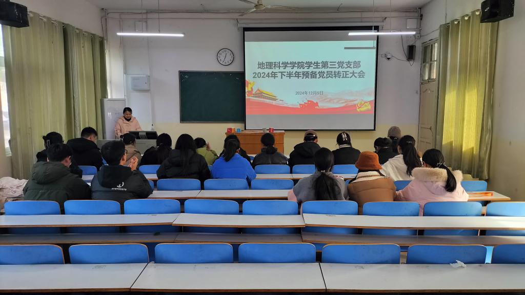 12月5日,bat365学生第三党支部2024年下半年预备党员转正支部大会于教三04顺利召开,支部书记杨辉,支部全体党员及2024年下半年正式党员候选人共同参会。会议由杨辉主持。