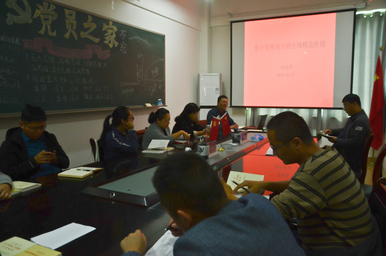 10月15日,bat365正版唯一官网教工第三党支部书记赵承美在理科楼南403会议室以“充分发挥党员的先锋模范作用”为题开讲主题教育专题党课。教工第三党支部全体同志参加了此次党课学习。