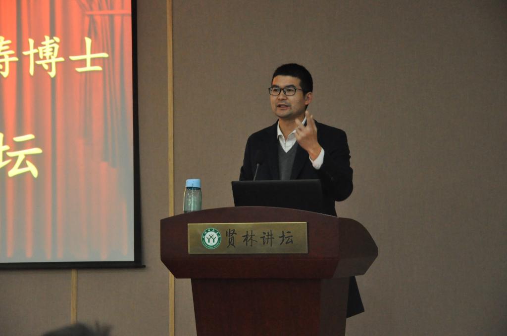 为深入推进“不忘初心 牢记使命”主题教育,11月19日,bat365特邀河南省委党校周海涛博士在贤林讲坛作题为《不忘初心,牢记使命》的专题讲座。bat365党委书记吴泽成主持本次讲座,学院领导班子成员、全体师生党员、入党积极分子两百余人共同聆听了讲座。