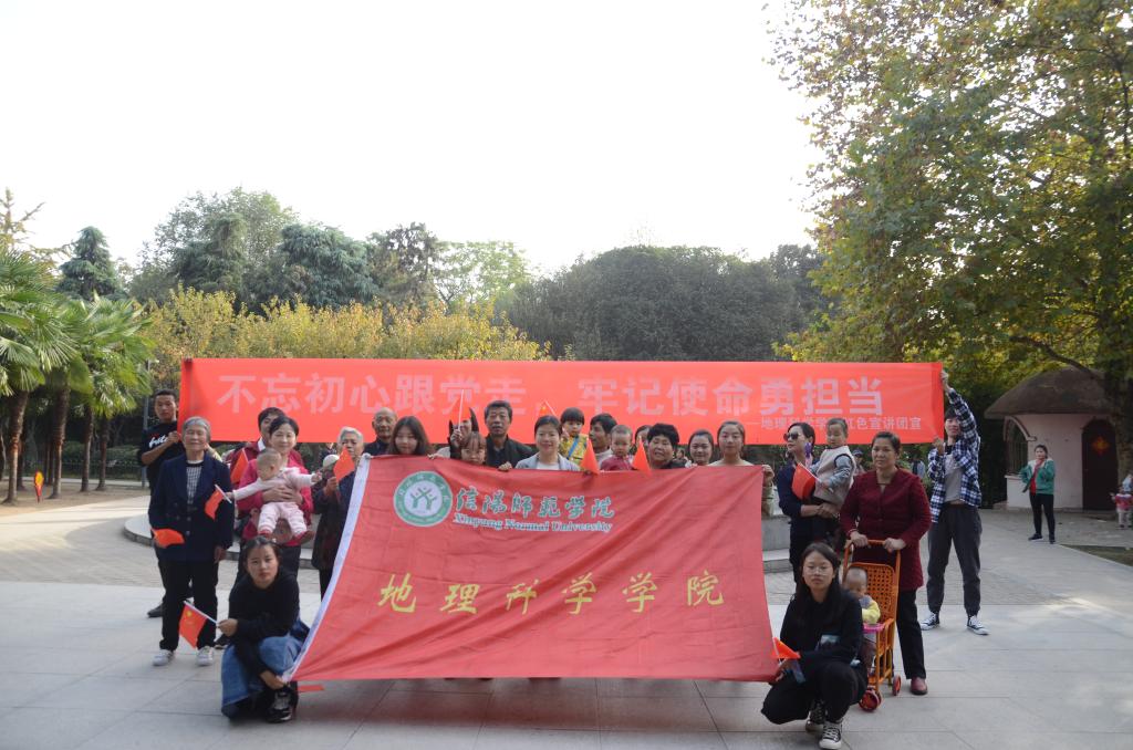 10月29日,bat365正版唯一官网红色宣讲团前往信阳市浉河公园开展“不忘初心、牢记使命”红色宣讲活动。宣讲团由在“讲红色故事,传红色基因”演讲比赛表现突出的学生党员组成。
