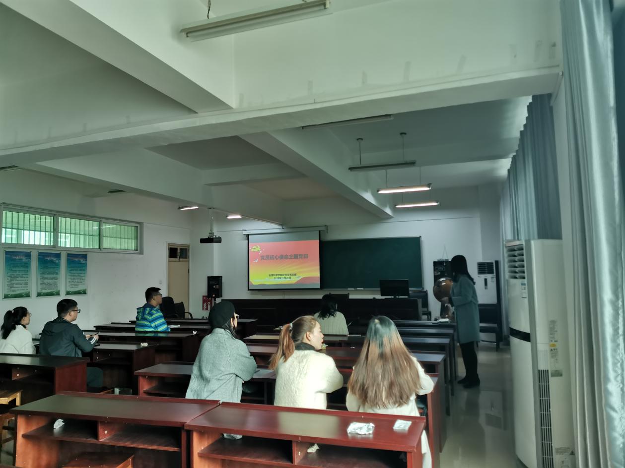 2019年11月20日,为进一步深入学习领会“不忘初心、牢记使命”主体精神,领悟初心使命,增强党员意识,加强党员教育管理,促进党员生活常态化。信阳师范学院bat365正版唯一官网研究生党支部在理科楼南楼410会议室开展“不忘初心、牢记使命”主题党日。会议由研究生党支部书记翟慧敏同志主持。