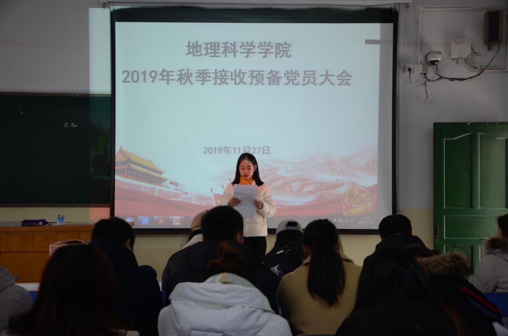 11月27日,bat365正版唯一官网学生第二党支部于教三03召开2019年秋季接收预备党员大会。学生第二党支部书记徐柏林,党支部正式党员、预备党员及发展对象一同参加此次会议。会议由正式党员贾心悦主持。