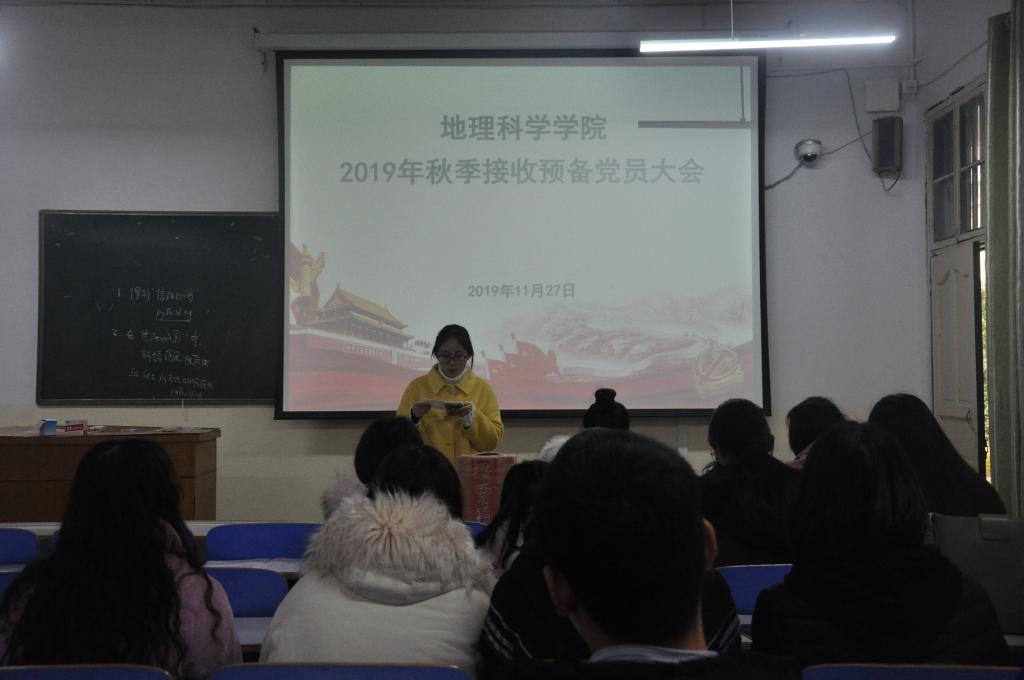 11月27日,bat365正版唯一官网学生第三党支部2019年预备党员接收大会于教三04顺利召开。学生第三党支部书记杨辉,全体党员及2019年秋季发展对象共同参与本次会议。会议由虞燕主持。