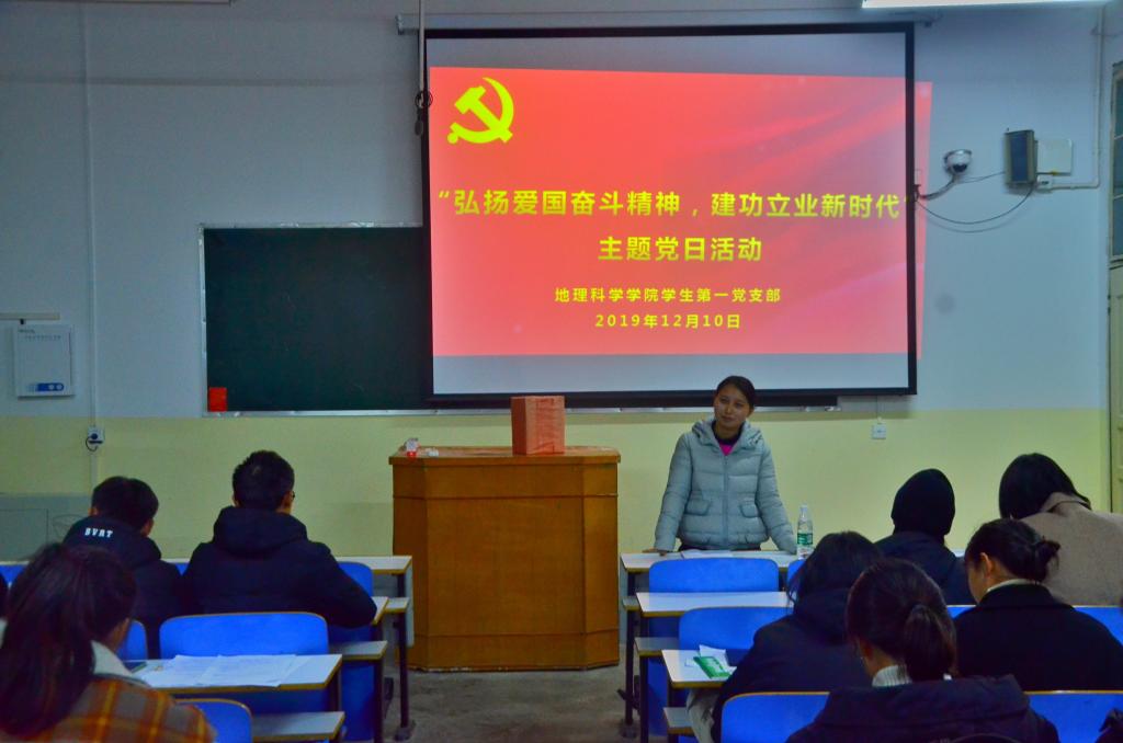 12月10日,bat365正版唯一官网学生第一党支部于教三01开展“弘扬爱国奋斗精神,建功立业新时代”主题党日活动。活动由学生第一党支部书记艾甜甜主持,党支部全体党员、发展对象参加。