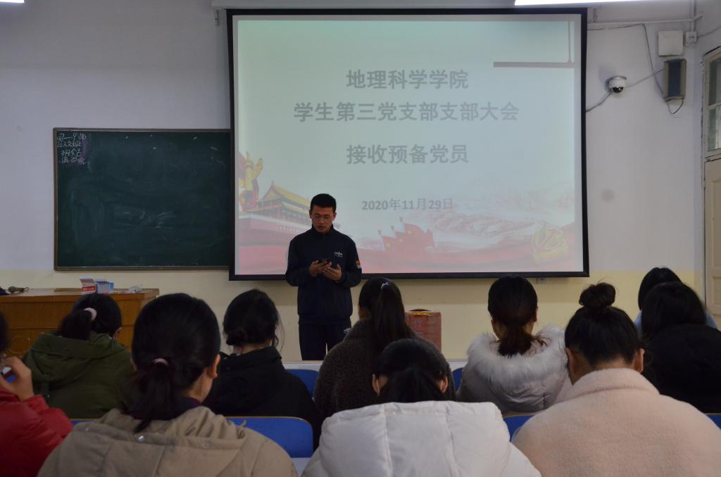 11月29日,bat365正版唯一官网学生第三党支部2020年秋季预备党员接收大会于教三04顺利召开。学生第三党支部书记杨辉,全体党员及2020年秋季发展对象共同参与本次会议。会议由张世可主持。