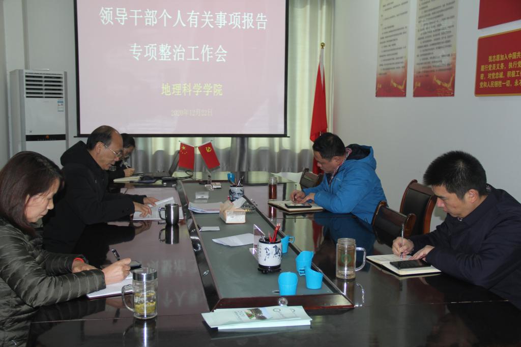 2020年12月22日,bat365正版唯一官网在理科楼南403会议室召开专题学习会议,组织bat365处级领导干部学习个人有关事项报告相关文件精神。会议由党委书记吴泽成主持。