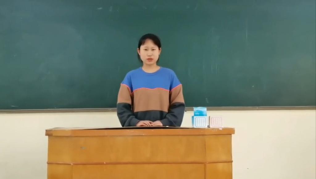 陈梦歌结合主题讲述了女英雄朱枫义的抗战故事,朱枫义义无反顾地走上反帝反封建道路,参加爱国游行活动,变卖工艺品支持抗战事业,最终为国献身,歌颂了她爱国爱党、奉献自我、不畏牺牲的优秀品质。作为新青年,陈梦歌呼吁同学们追随先烈的脚步,不忘初心、砥砺前行,为党的繁荣发光发热。