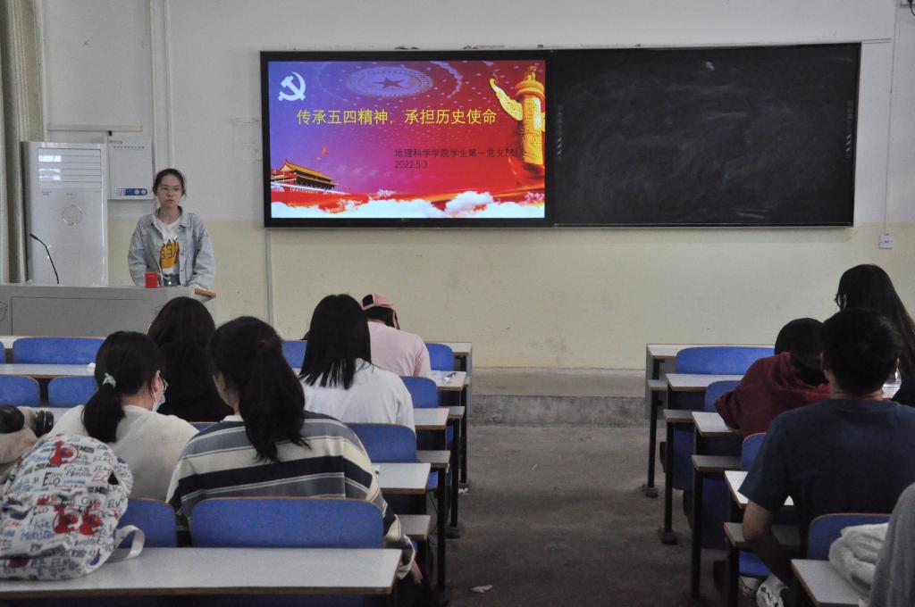 为迎接五四青年节,激励引领大学生党员继承和发扬五四精神,5月3日,bat365正版唯一官网学生第一党支部于教三01开展了“传承五四精神,承担历史使命”主题党日活动。支部全体党员参与了本次活动,活动由宣传委员王景怡主持。