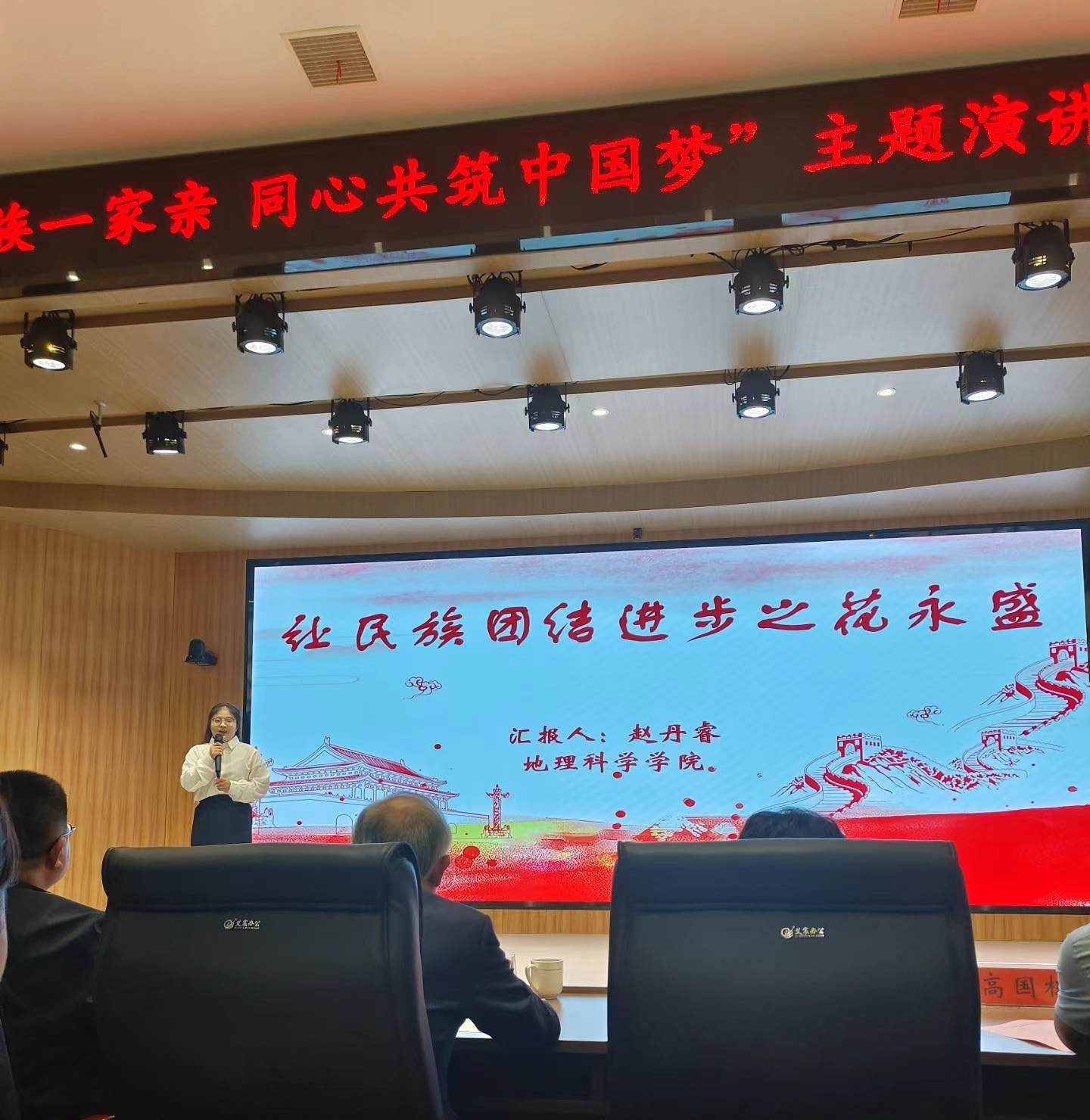 9月28日,“中华民族一家亲 同心共筑中国梦”演讲比赛决赛在谭山书院大学生活动中心举办。bat36522级地理科学三班赵丹睿在初赛、复赛中突出重围,代表学院参加决赛。