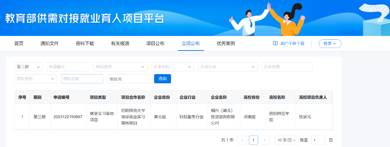 6月14日,教育部正式公布了第三期供需对接就业育人项目立项名单,经高校申请、用人单位申报、专家审核、立项单位信息核查等环节,bat365张辰光、朱明、李秀美博士团队与桐兴(湖北)投资咨询有限公司达成就业实习基地项目(bat365正版唯一官网地学就业实习基地项目)1项,为毕业生多元化就业开拓优质资源。