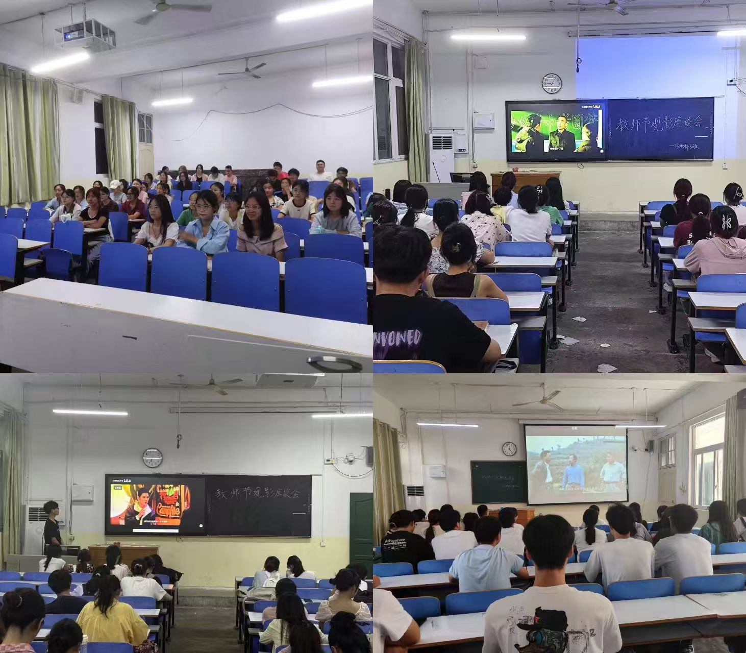 在各班班长的带领下,同学们积极参与其中,分别观看了《桃李无言》《我要当老师》《大山里的女校》《一生只为一事来》《李保国》等主题影视剧,这些均是反映教师优美品质与优秀事迹的佳作,以生动感人的故事为载体,深刻讲述了人民教师普通却不凡的一生,体现了人民教师立德树人、倾心教育的情怀,深刻揭示了教育在个体成长与社会进步中的核心作用。影片告诉我们,教育不仅仅是知识的传递,更是人格的塑造与灵魂的启迪。教师,作为知识的传播者,更是学生人生道路上的指引者,他们的一言一行,都深深地影响着学生的未来。观影结束后,各班就此开展观影座谈会,同学们反响激烈,纷纷表示影片展示了人民教师的大爱情怀,令人感动,收获满满。