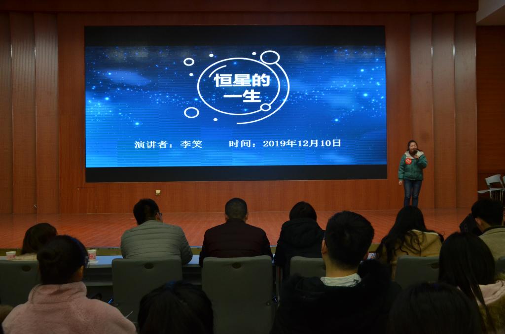 激情四射的开场舞带动了全场的气氛,在主持人介绍完评分细则后,比赛正式开始,本次比赛分为PPT演讲与地理知识竞赛两个环节。PPT演讲环节,六位选手围绕“星运有你”、“青国清城”“、漠无生息,绿有生机”三个主题从多角度选材,以小见大,向观众和评委展示了自己深厚的地理底蕴。其中,四号选手张涵荻,以荒漠化为主题,结合地球荒漠化日益加剧的现实问题,呼吁同学们关注荒漠化;二号选手李笑由恒星的一生联想到个人的一生,用深情的演讲感染了在场的每一位观众。地理知识竞赛分为个人必答题、抢答题、集体必答题三个部分。各小组成员配合默契、踊跃答题,竞相展现丰富的地理知识,赢得了场下观众的欢呼声。期间,舞蹈和小品轮番上场,为现场观众带来一场视听盛宴。最终,张涵荻荣获PPT演讲一等奖,冯蕾代表队荣获知识竞赛一等奖。活动最后,赵承美致闭幕辞,他对本次活动的开展表示充分肯定,希望更多的同学能够在这样的舞台上展示自我,并对天文地理爱好者协会寄予了美好祝福。