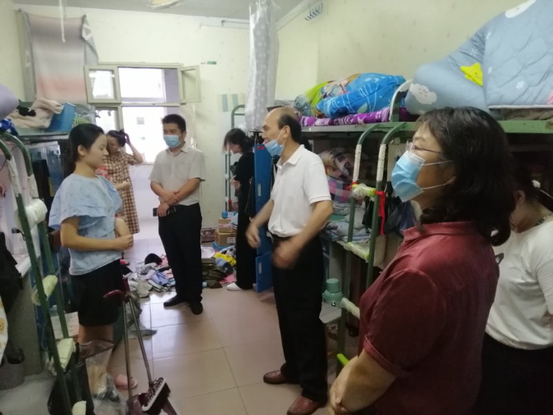 为进一步了解疫情防控期间返校学生学习生活情况,9月7日,bat365正版唯一官网党委书记吴泽成、副院长刘明华、副书记朱伟带领全体辅导员班主任走访宿舍,探望返校学生。