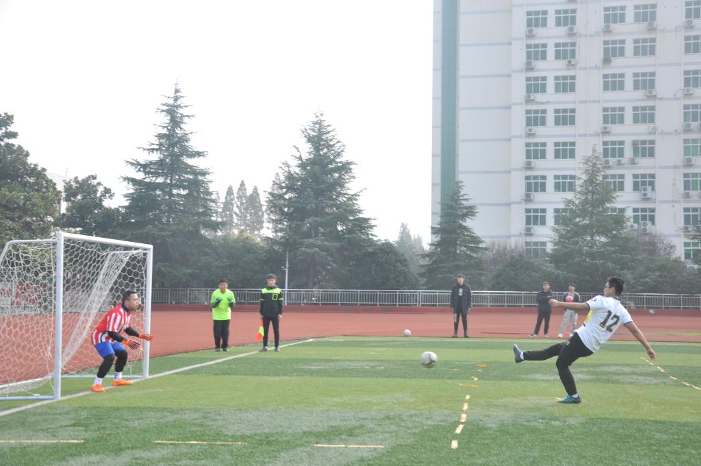 随着裁判的一声哨响,比赛正式开始,双方球员迅速进入比赛状态。历史院球员毫不示弱,守门员严防死守,球员之间积极配合。化院球员不甘落后,积极调整战略队形,变守为攻,比赛逐渐进入高潮,赢得场下观众阵阵掌声。上半场比赛结束,经过短暂休息,双方球员进入后半场的激烈角逐。球员们情绪高涨,奋力拼搏,积极拼抢,场上双方进行数次精彩的打门,但都未能进球,比赛陷入僵局。最终,裁判以点球的方式决定本场比赛的胜负,化院球员以3:1赢得了此次比赛。