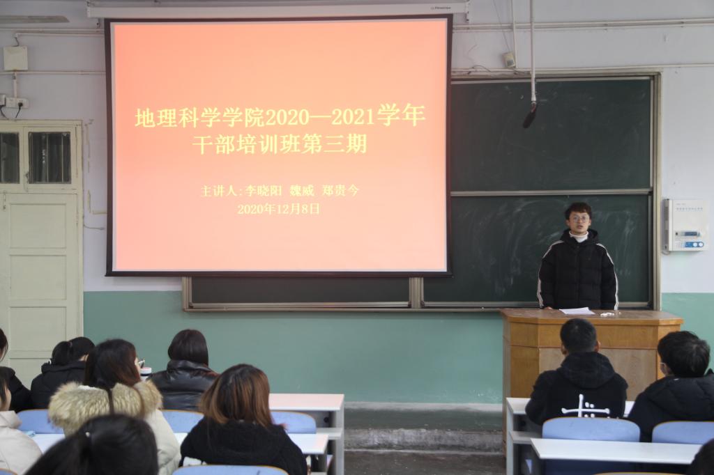 12月8日,bat365正版唯一官网2020—2021学年干部培训班第三期于教二梯二顺利开展。bat365正版唯一官网2019级学生会成员,2020级各班班长、团支书一同参加此次活动。