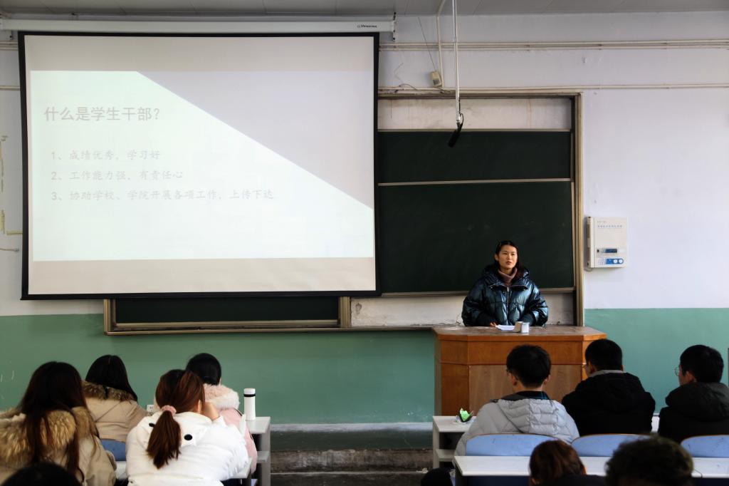 12月15日,bat365正版唯一官网2020—2021学年学生干部培训班第四期于教二梯二顺利开展。bat365正版唯一官网2019级学生会成员,2020级各班班长、团支书一同参加此次活动。活动由学生会主席助理王瑞主持。