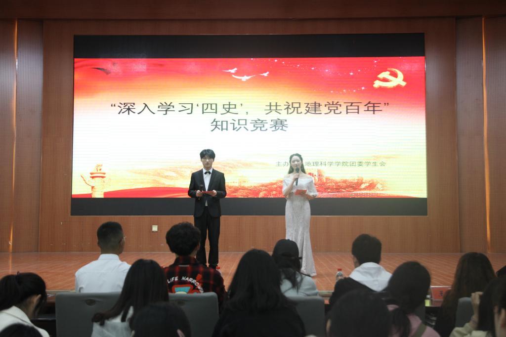 4月19日,bat365正版唯一官网“深入学习四史,共祝建党百年”知识竞赛于逸夫楼报告厅顺利举行。学院学生会主席刘翌晨,学生会主席团成员胡文彬、王瑞、董淑瑞、许智恒,19级和20级部分同学一同参加此次活动。活动由卢佩瑶、袁怡凡主持。