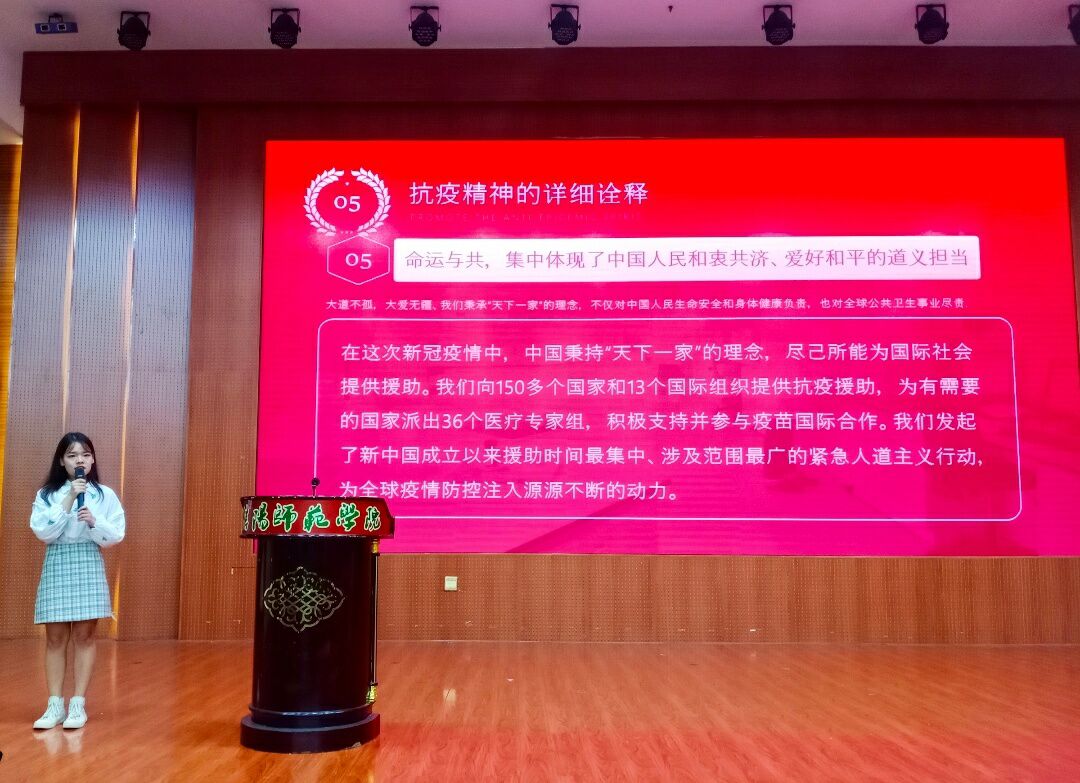 为迎接中国共产党建党一百周年,弘扬伟大抗疫精神,进一步丰富“四史”学习教育。5月15日,“抗疫情助脱贫攻坚,学四史迎建党百年”讲价值观故事演讲比赛暨颁奖仪式于逸夫楼报告厅顺利举行。bat365正版唯一官网团委老师曹鹏鹏,学生会主席刘翌晨等人担任评委,bat365百余名学生观看比赛。活动由龚奕媛和袁怡凡主持。