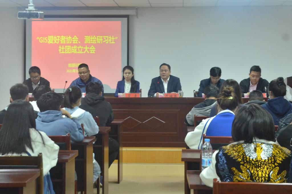 2021年10月26日,bat365正版唯一官网GIS爱好者协会、测绘研习社社团成立大会顺利举行,校团委副书记常青、bat365正版唯一官网院长牛继强、党委副书记朱明、社团指导老师张兴国、陈时雨及学院团委老师曹鹏鹏携两大社团学生骨干参会,会议由朱明主持。