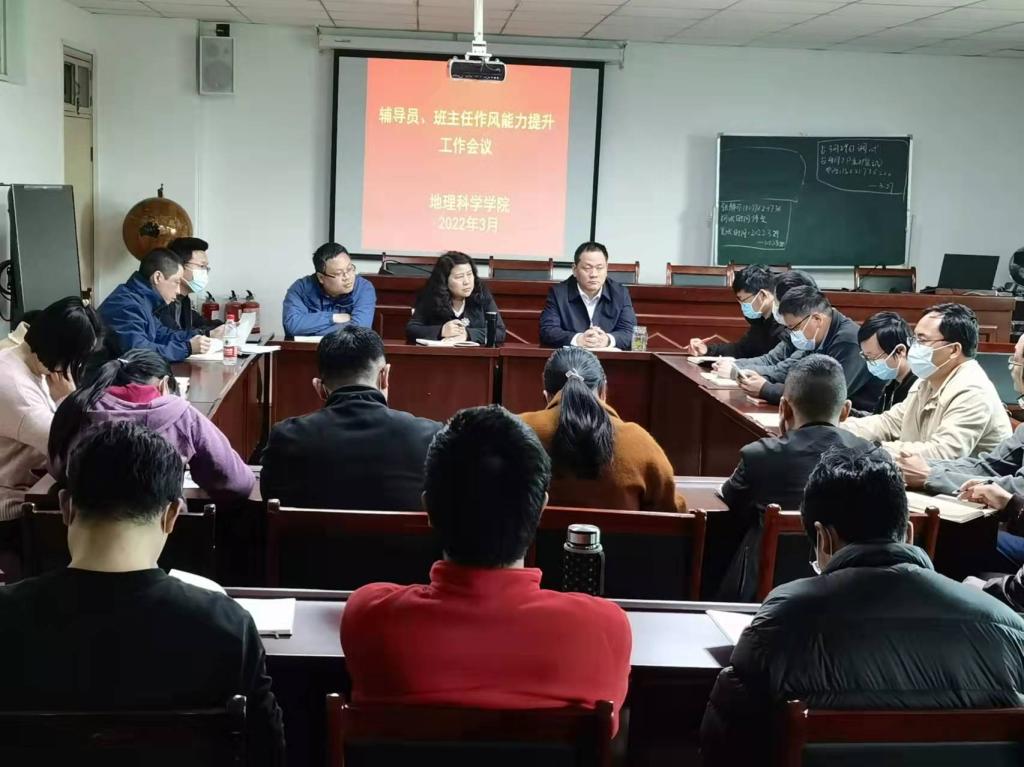 3月29日,bat365正版唯一官网于理科楼南410会议室召开辅导员、班主任能力作风提升工作会议。学院党委书记宋力、院长牛继强、党委副书记朱明及全体辅导员、班主任参会。会议由朱明主持。