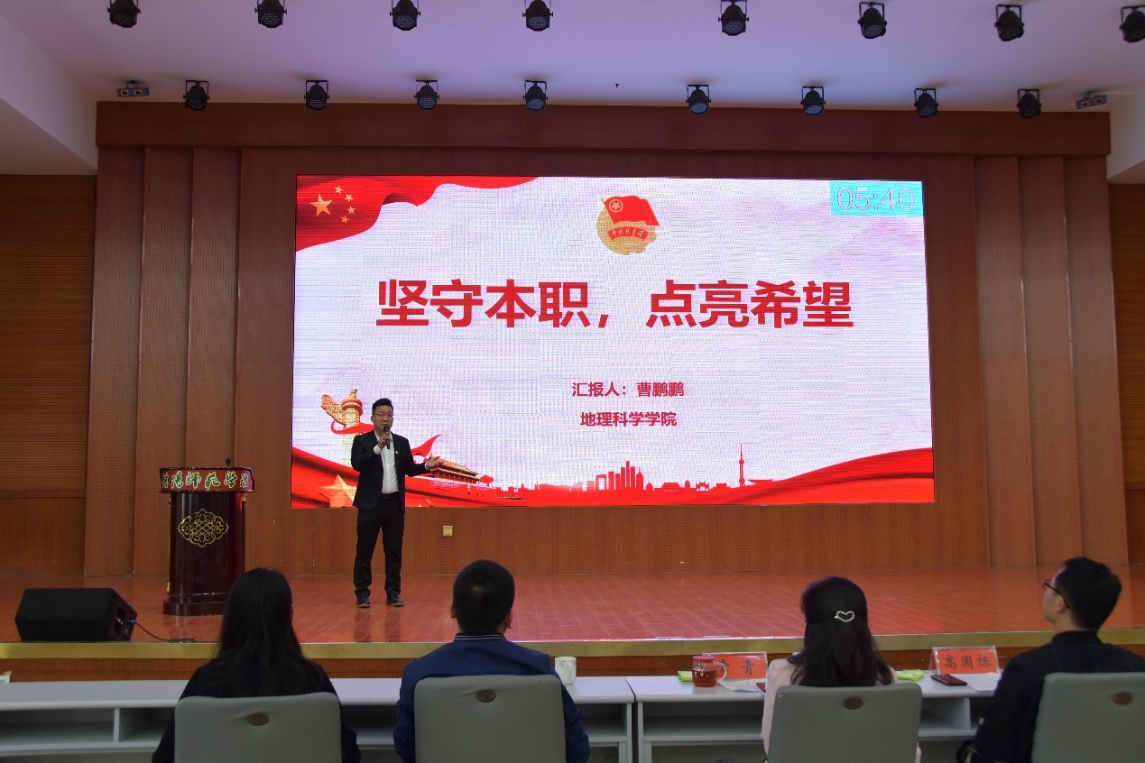为深入贯彻落实习近平总书记关于青年工作的重要思想和视察河南重要讲话重要指示,认真贯彻省第十一次党代会精神和共青团十八届六中全会精神,按照省第十五次团代会、团河南省十五届二次全会的工作部署,2022年4月18日,校团委在逸夫楼报告厅举办了信阳师范学院共青团基层团干部2022年度“微团课”大赛,校宣传部副部长高国栋、校团委副书记常青、土木工程学院党委副书记冀鹏、传媒学院播音主持专业老师及各学院选拔的团委老师参加,bat365团委副书记曹鹏鹏以《坚守本职,点亮希望》为主题展开演讲,经过评委老师评选,曹鹏鹏老师荣获“一等奖”。