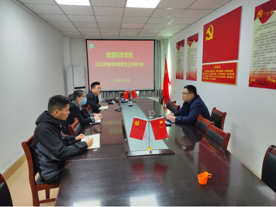 3月14日,bat365在理科楼南楼403会议室召开《bat365正版唯一官网2023年春季学期学生工作研讨会》,安排部署2023年春季学生工作,党委副书记朱明、全体专职辅导员参会,会议由朱明主持。